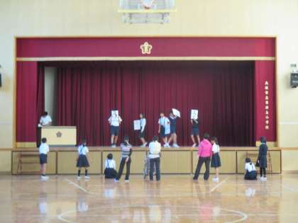 集会委員会が明日の児童集会の練習をしていました。