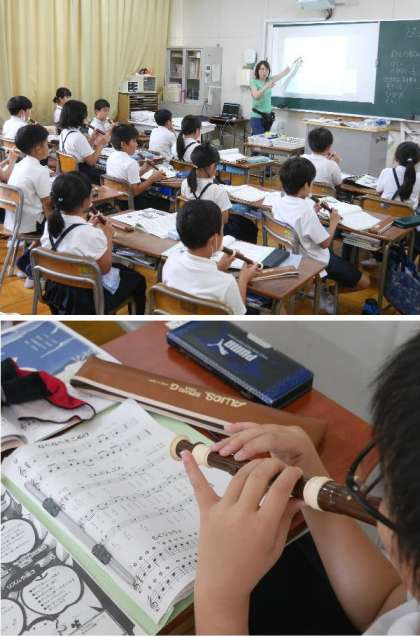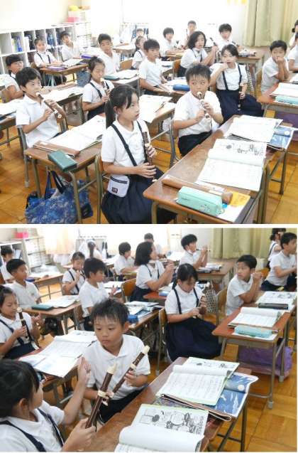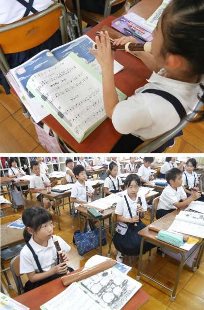 3年生がリコーダーの練習をしています。指の使い方がむずかしいですね。しっかり押さえないと違う音がでてしまいます。