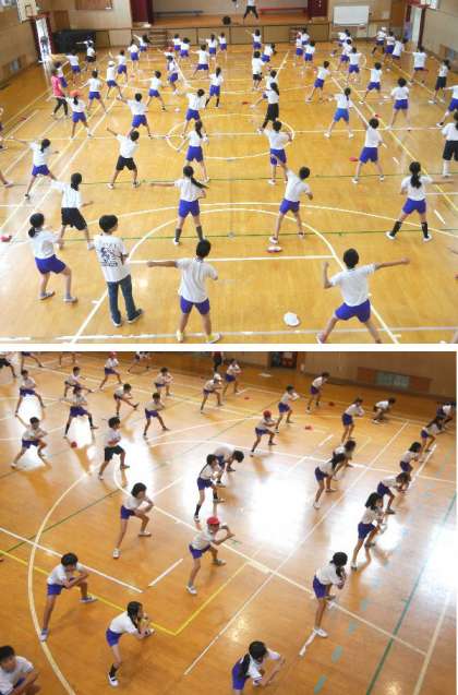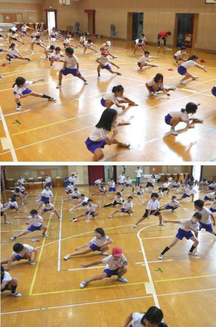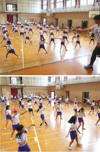 5年生の団体演技は、南中ソーランです。ちからづよく踊ります。少しずつ、ソーランの力強さがでてきていますね。