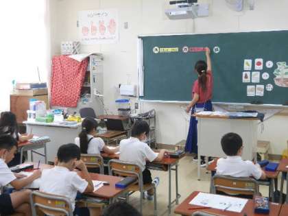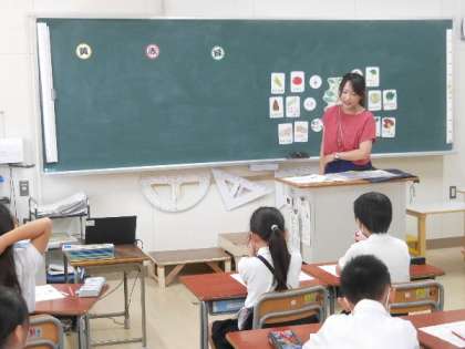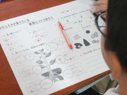3年生で栄養教諭の先生が、私たちの食べている植物についての授業をしていました。食べているのは植物のどの部分かなどを学習しました。