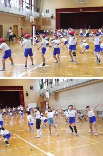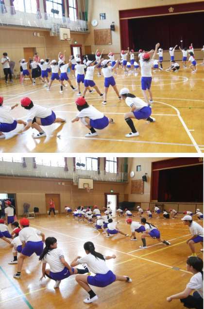 5年生はソーランをしながら隊形を変えたり、演出を練習しています。