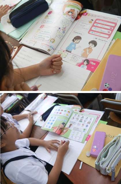 5年生の英語では、身近な友だちを紹介する英文を作っていました。