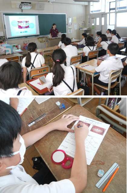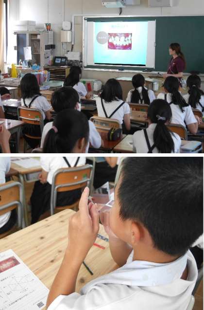 6年生で保健室の先生が、歯と口の健康についての授業をしました。健康な歯は生涯にわたって大切ですね。