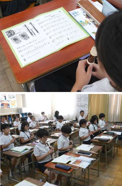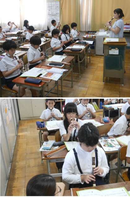 4年生がリコーダーで、「小さな世界」を演奏練習していました。指の使い方むずかしいけどがんばっています。