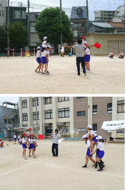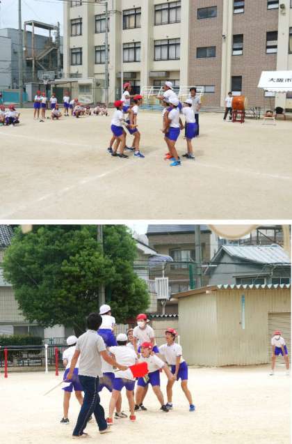 6年生が運動会で競技する騎馬戦の対戦練習をしています。