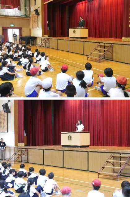 今日は全校朝会をおこないました。校長先生からは、「自分ひとりぐらい」という気持ちについてお話しました。