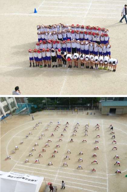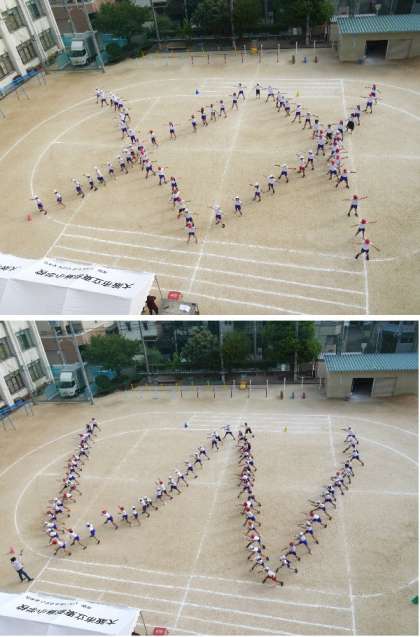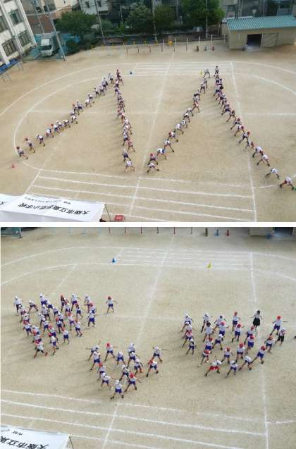 5年生が運動会の団体演技をとおしで練習をしていました。隊形が次々にかわっていくので、見ごたえがありますね。