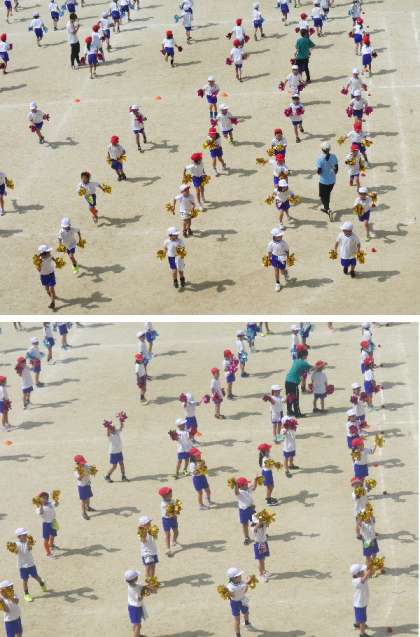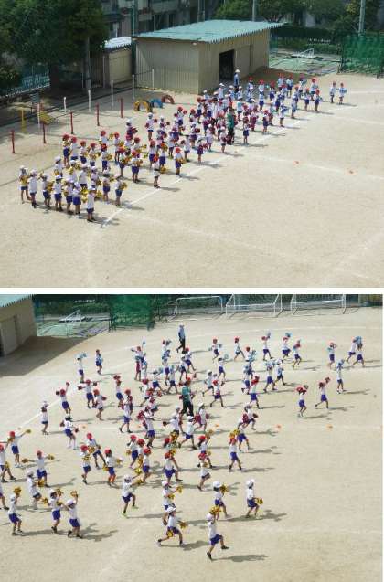1年生の団体演技では、子ども達は両手に飾りをもって踊ります。