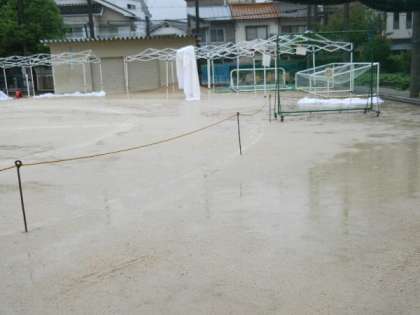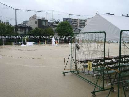 雨は降りやみつつありますが。運動場のコンディションわるく、延期といたしました。