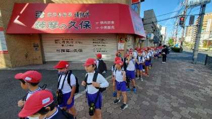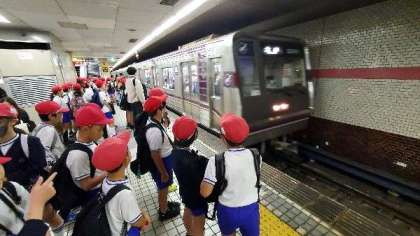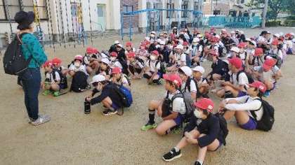絶好の行楽ひよりです。4年生が遠足に出かけます。万博記念公園まで、地下鉄とモノレールにのって行きます。