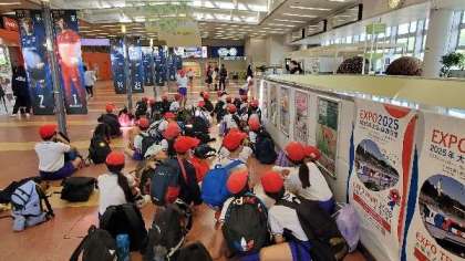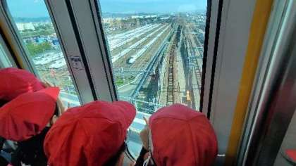 万博記念公園に着きました。途中、新幹線の基地が見えました。