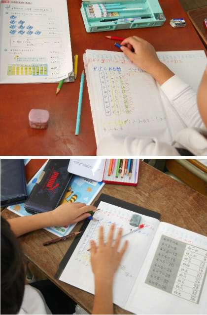 2年生の算数では、九九の学習をしています。各段ごと確実に覚えていきましょう。