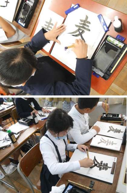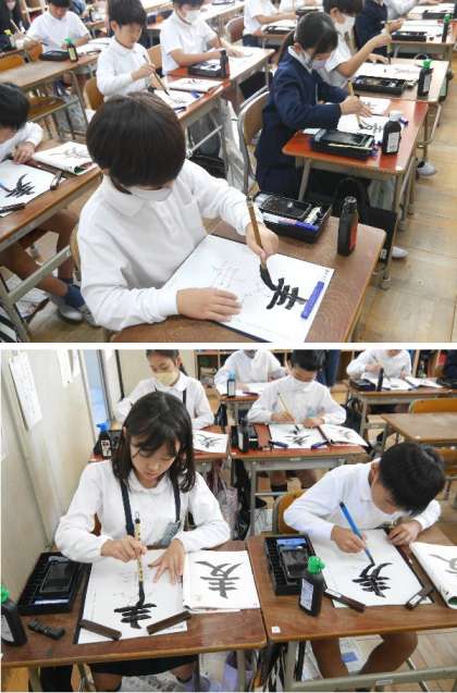 4年生が、「麦」という漢字を書道で練習していました。