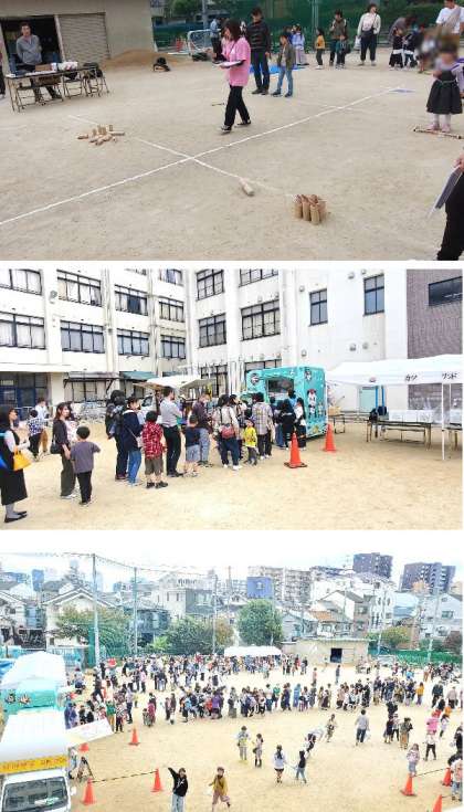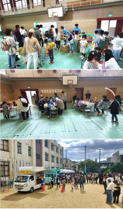 東都島小学校のPTAが主催の「ひがみやフェス」が開催されました。さまざまな食べ物や各ゲームに、子ども達が参加して、とても楽しいひと時を過ごしていました。