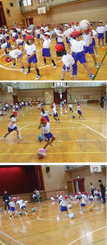 今日は、都島区の運動能力向上事業で、講師先生にきていただき、それぞれの学年でボール運動を中心にした授業をしていただきのした。