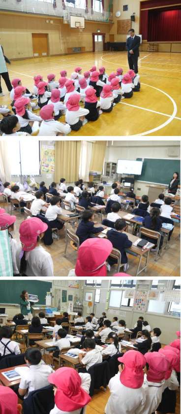 ひがみや児童センターから、来年、1年生で入学してくる園児たちが、小学校の見学に来ました。