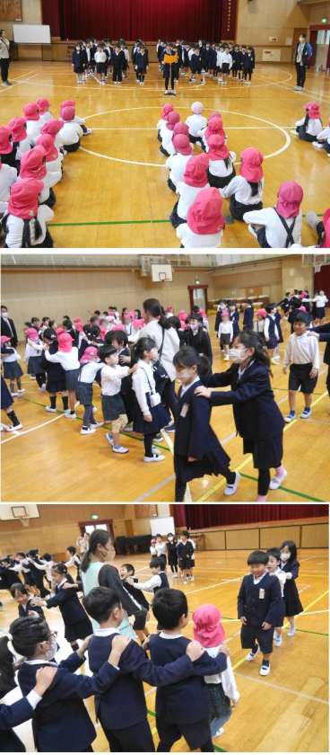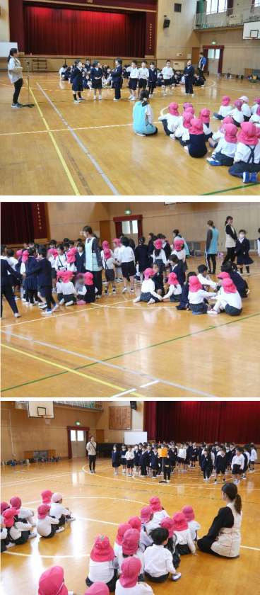 小学校1年生の国語や算数の授業の様子を見学しました。講堂で、2年生とレクレーションゲームをして楽しみました。ご入学をお待ちしています。