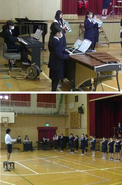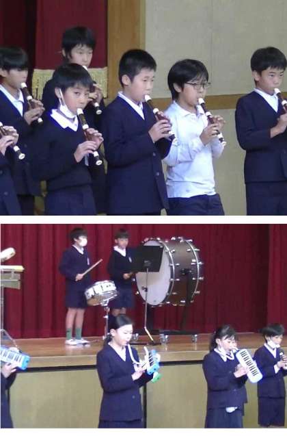 20分休み時間に、5年生は音楽で練習してきた合奏を講堂で披露してくれました。5年1組が「糸」、5年2組が「情熱大陸」を演奏しました。