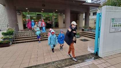 2年生が遠足でキッズプラザに行きます。あいにくの雨です。