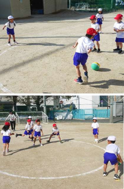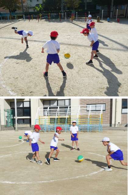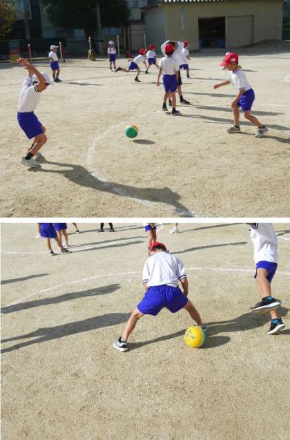 1年生でボールを使ったゲームを学習しています。ころがしドッヂボールで楽しんでいました。