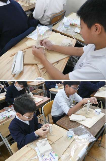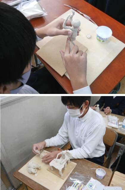 未来の自分のポーズを紙粘土で作っています。どんな自分でしょうか。