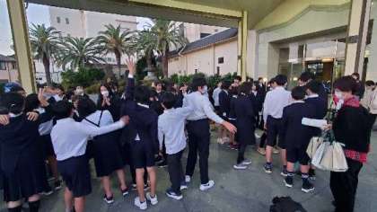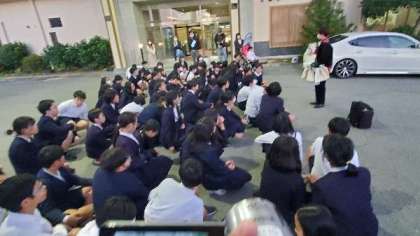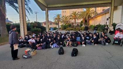 いったん部屋に入って、避難訓練でもう一度集合しました。