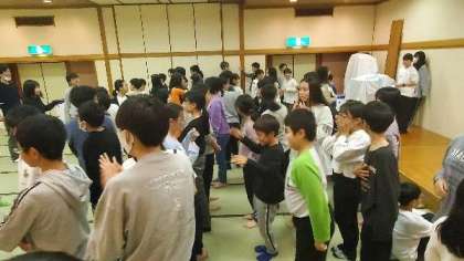 お楽しみ大会、ジェスチャー伝言ゲームです。