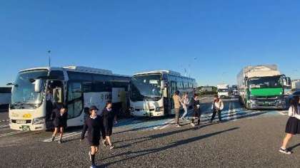 天理パーキングでトイレ休憩です。次は学校に到着です