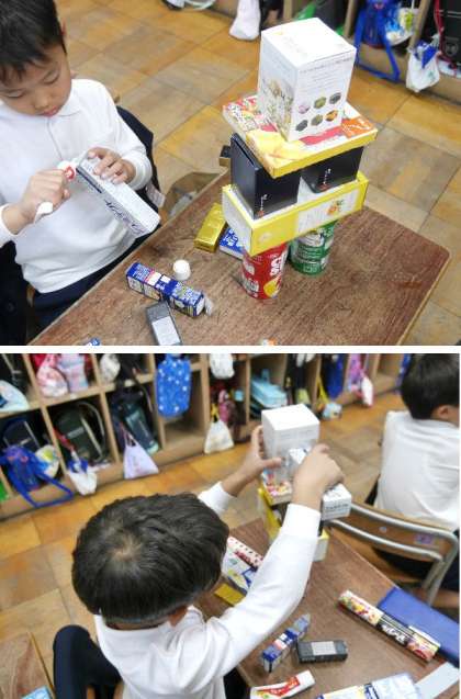 11月27日 1年図工!空き箱で作品づくり 公開日 2023/11/27 更新日 2023/11/27 学校生活 1年生では、おうちから持ってきた空箱をボンドで接着していろいろなものを作っています。ロボットや家など、工夫しながら作っています。 いいね(0)