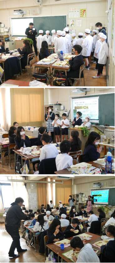 4年生で、給食の様子をケーブルテレビが撮影に来ました。4年生では、栄養授業でなにわ野菜や、地産地消について学習しました。
