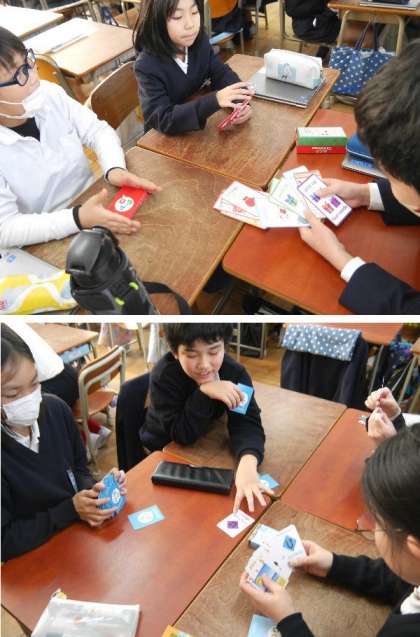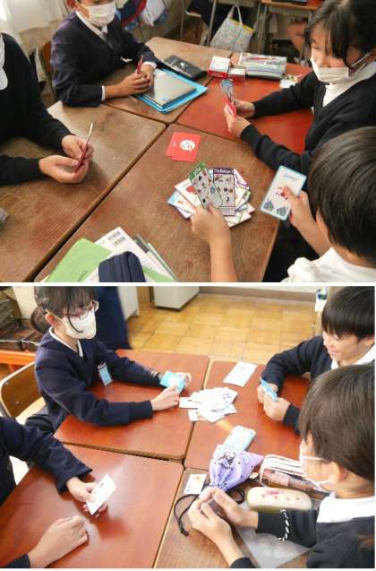 5年生の英語では、英語のカードゲームをグループで楽しんでいました。