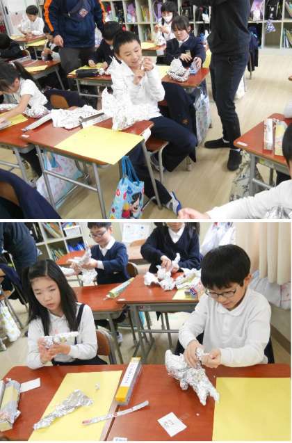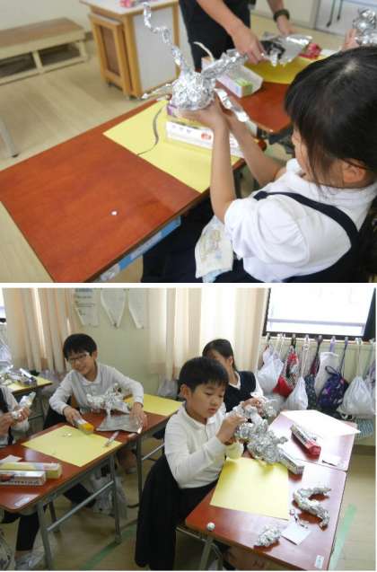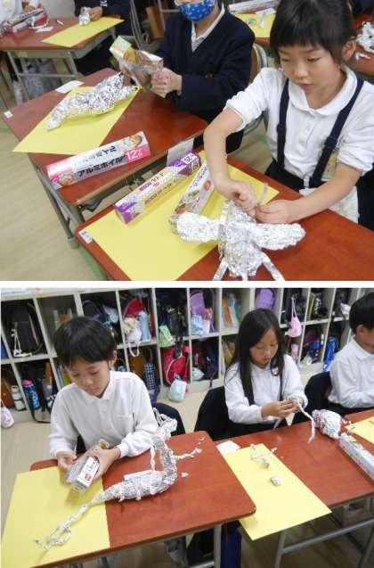 3年生が、作品展に出展する作品の仕上げに頑張っていました。