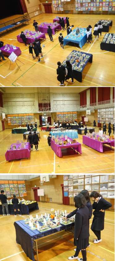 明日から作品展が始まります。各学年の作品できれいに展示されました。どの学年もとてもよくできていますね。ひとつひとつの作品をじっくりとご覧ください。ご来場をお待ちしています。