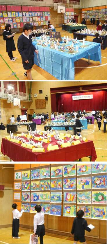 昨日から始まった作品展です。今日も学年ごと作品の鑑賞をしています。子ども達は丁寧に作品をみて感想を書いていました。