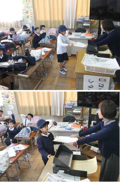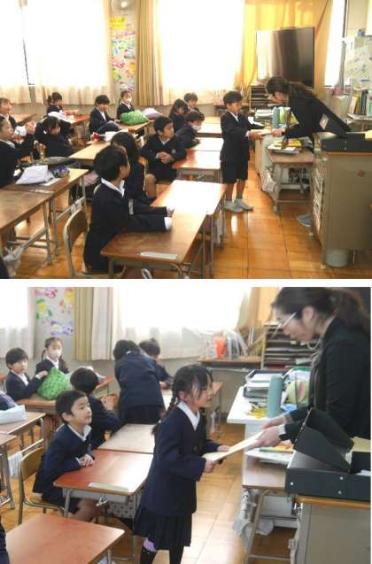 終業式のあと、学活で1年生は担任の先生から手渡しで通知表をもらいました。