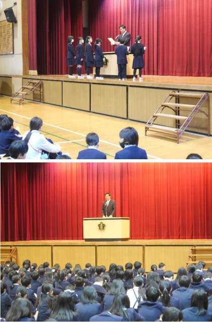 校長先生から、1月1日におこった能登半島地震についてお話ししました。震度7〜5の地震が続いています。この災害によって被災された方々に心よりお見舞い申しあげます。