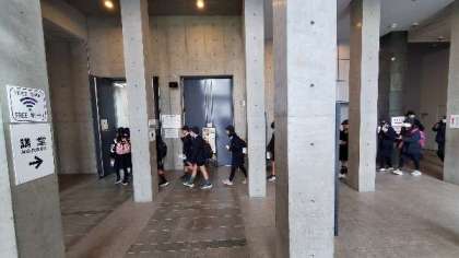 ピース大阪に到着しました。まず、講堂で映画を見ます。