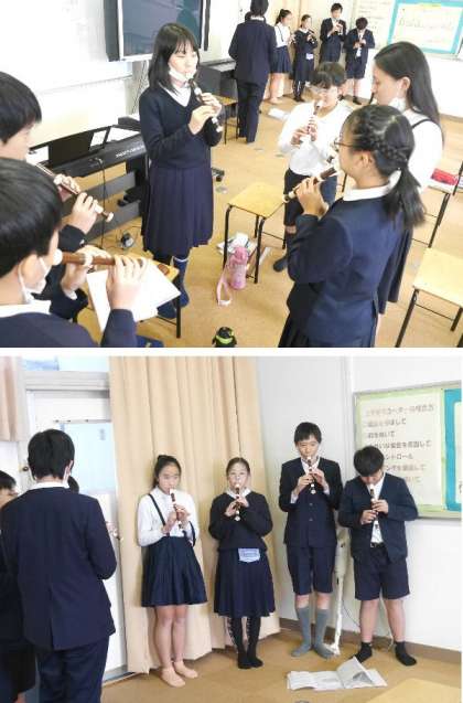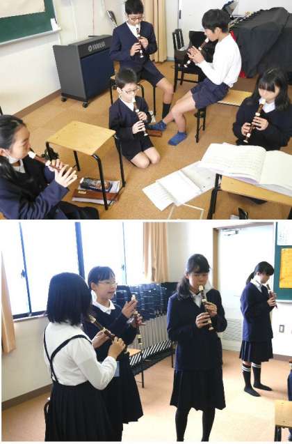 6年生が音楽室でリコーダーの練習をしていました。チームにわかれて、それぞれの曲を練習していました。