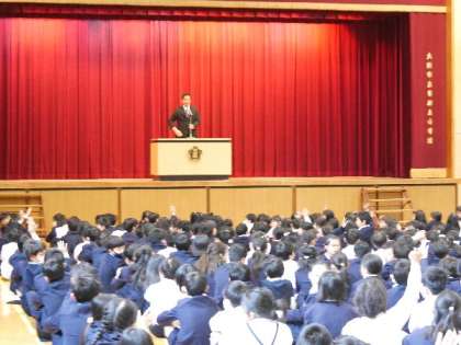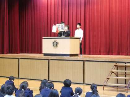 全校集会では、校長先生から「朝起きるときどうしてる」についてお話ししました。朝起きるときは、自分で起きてるか、家の人に起こしてもらってるか、目覚まし時計で起きてるか、どうでしょうか。自分でやることによって習慣となることのお話してす。