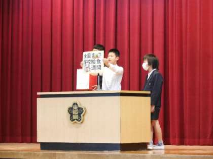 給食委員会から、水曜日から全国学校給食週間のお話しがありました。職員室前の箱に、給食調理員さんへの感謝の手紙を入れてくださいとのことです。