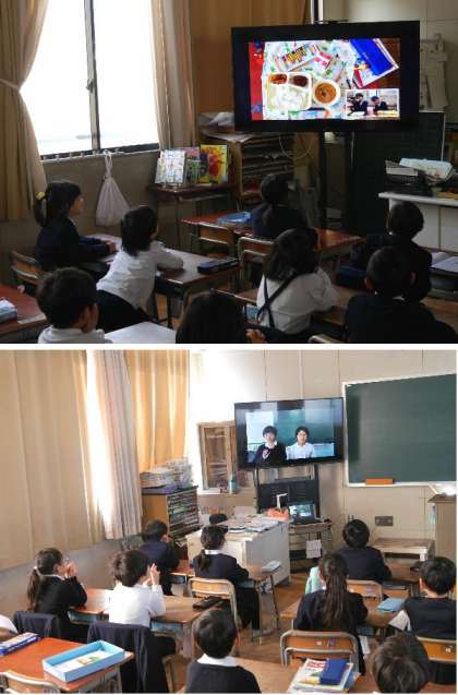 今日の児童集会は、各教室で、給食委員会が作ったビデオを見ました。給食配膳のマナーなどがクイズでだされ、最後に「野菜バリバリ元気っこ」のダンスがあって、楽しみながら給食のことがわかりました。