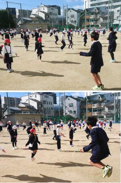 今日は3年生の業間なわとびがありました。運動委員会の児童が進行をしてくれています。