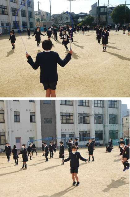 6年生が業間なわとびで、なわとび運動をしています。