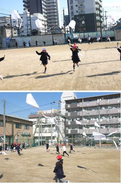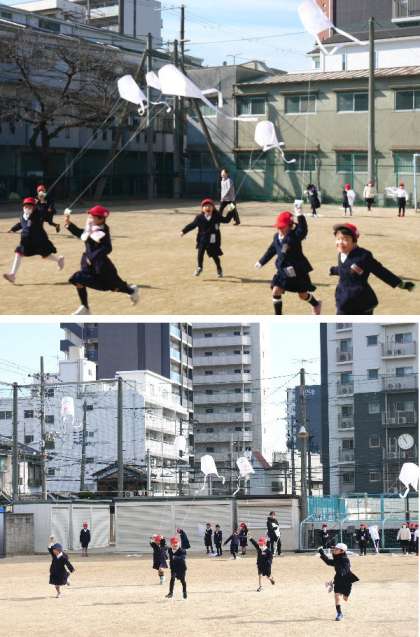 1年生が、第2グランドでたこあげをしました。これで3クラスのたこあげが終わりました。とても楽しそうにたこあげしていました。第2グランドは縦に長く、たこあげにはちょうどいい場所です。