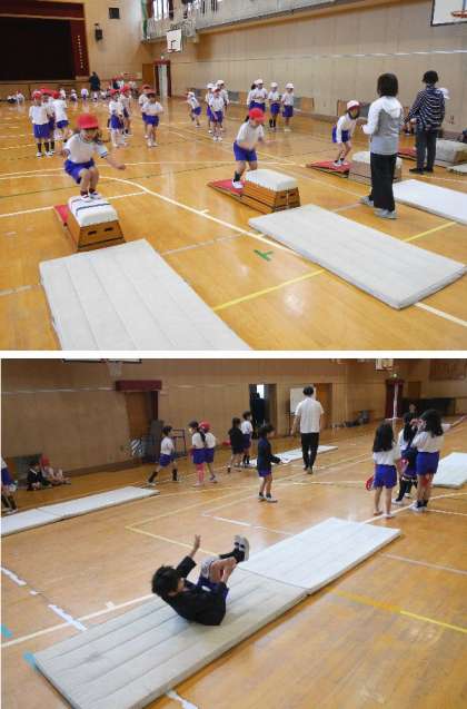2月1日 1年体育!マット運動、とび箱、おおなわとび