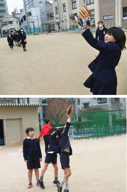 6年生から学級ごとに、大谷選手寄贈のグローブをまわして使ってもらっています。今日は5年生で、皆で運動場で交代でキャッチボールをしていました。はじめてグローブを手につけた児童もたくさんいました。