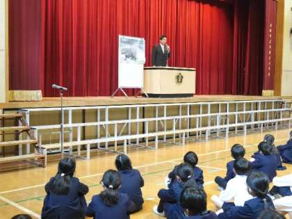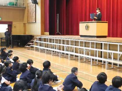 毎週月曜日には全校朝会があります。校長先生からは、「ヤマアラシのジレンマ」についてお話ししました。良好な人間関係を築くためには、距離感が必要であるというお話しでした。