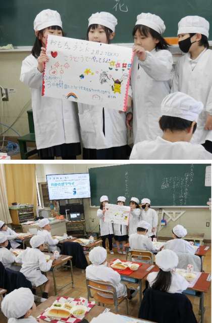 2年生が、1年生に「おもちゃランド」への招待の案内をしにきていました。