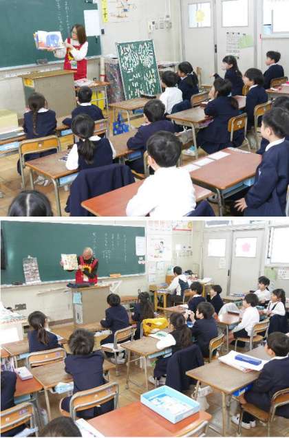 1年3クラス、3年1クラス、5年1クラスで読み聞かせをしていただきました。