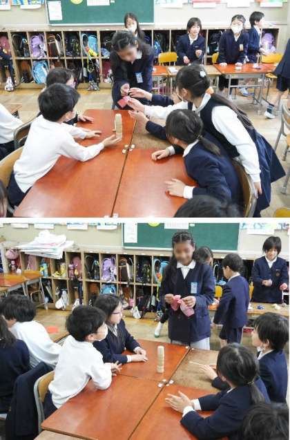 その日本語センター校に来ている児童との交流会が2年生で行われました。日本の昔あそびを一緒にして楽しみました。
